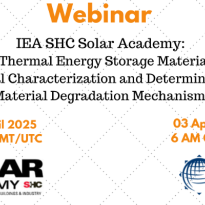 On 01 and 03 April, ISES is happy to welcome IEA SHC to hold a webinar as part of the IEA SHC Solar Academy series on the topic of Compact Thermal…